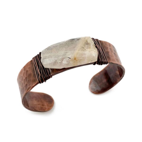 Hammered Copper Cuff Bracelet with Semiprecious Stone – Golden Rutile