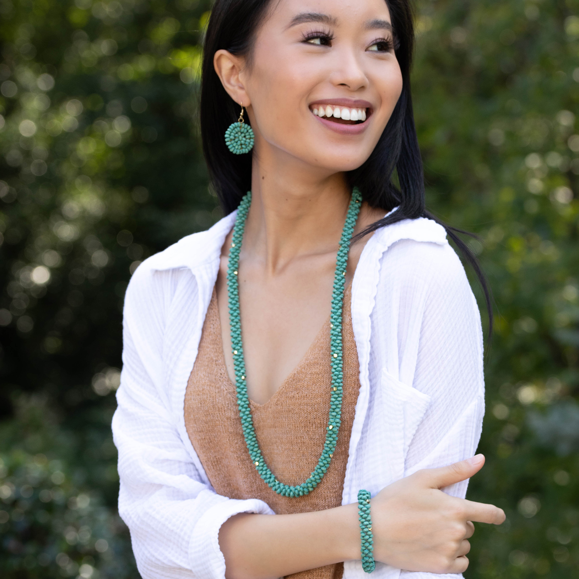 Our Chromatic Hues necklaces are 30″ long and a minimum of 2 per style.