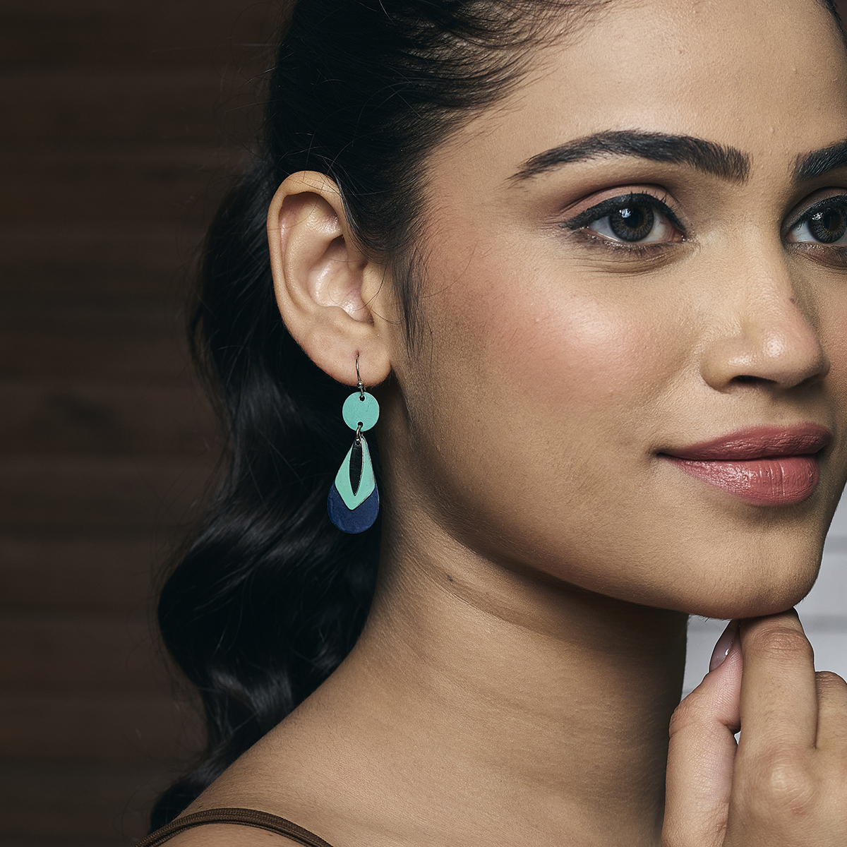 These Storm Bay Teardrop Layers Earrings are a layered teardrop drop from our Colourful Patina Collection. Handcrafted in India, they feature a teal and dark blue patina over a silver-plated brass base.