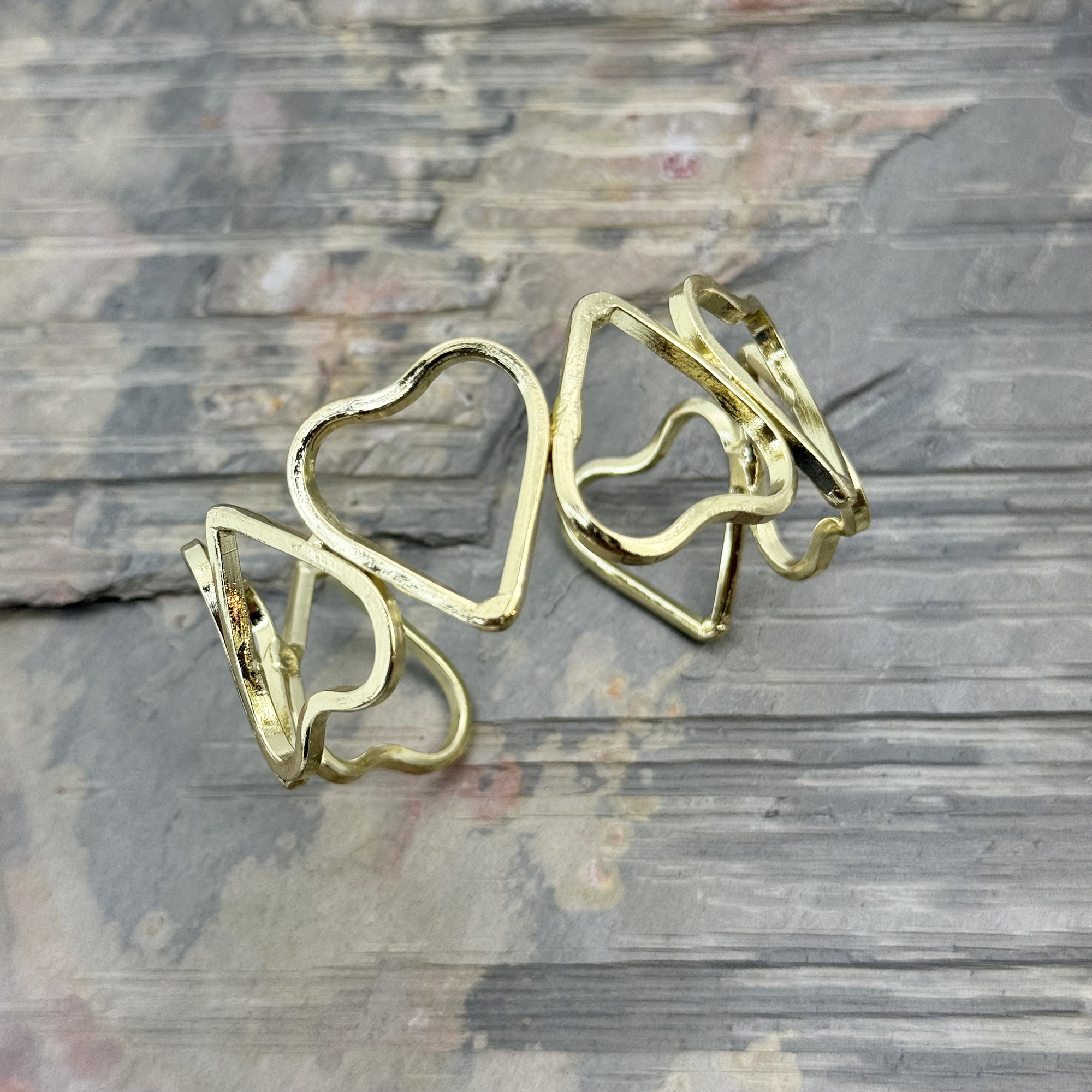 Delicate gold-tone wire cuff bracelet featuring an open heart motif. Lightweight and adjustable for a comfortable fit.